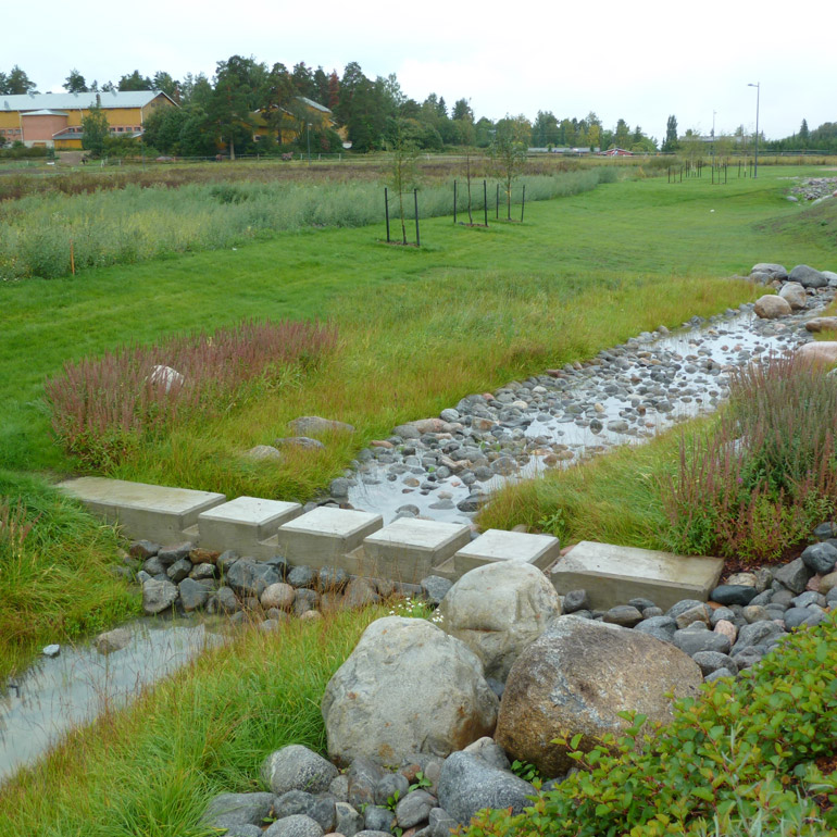 Kosteikot ja laskeutusaltaat pysäyttävät veden kuljettamaa kiintoainesta ja ravinteita. Samalla ne elävöittävät maisemaa, lisäävät vesiluonnon monimuotoisuutta ja tarjoavat suojaa ja pesäpaikkoja linnuille.